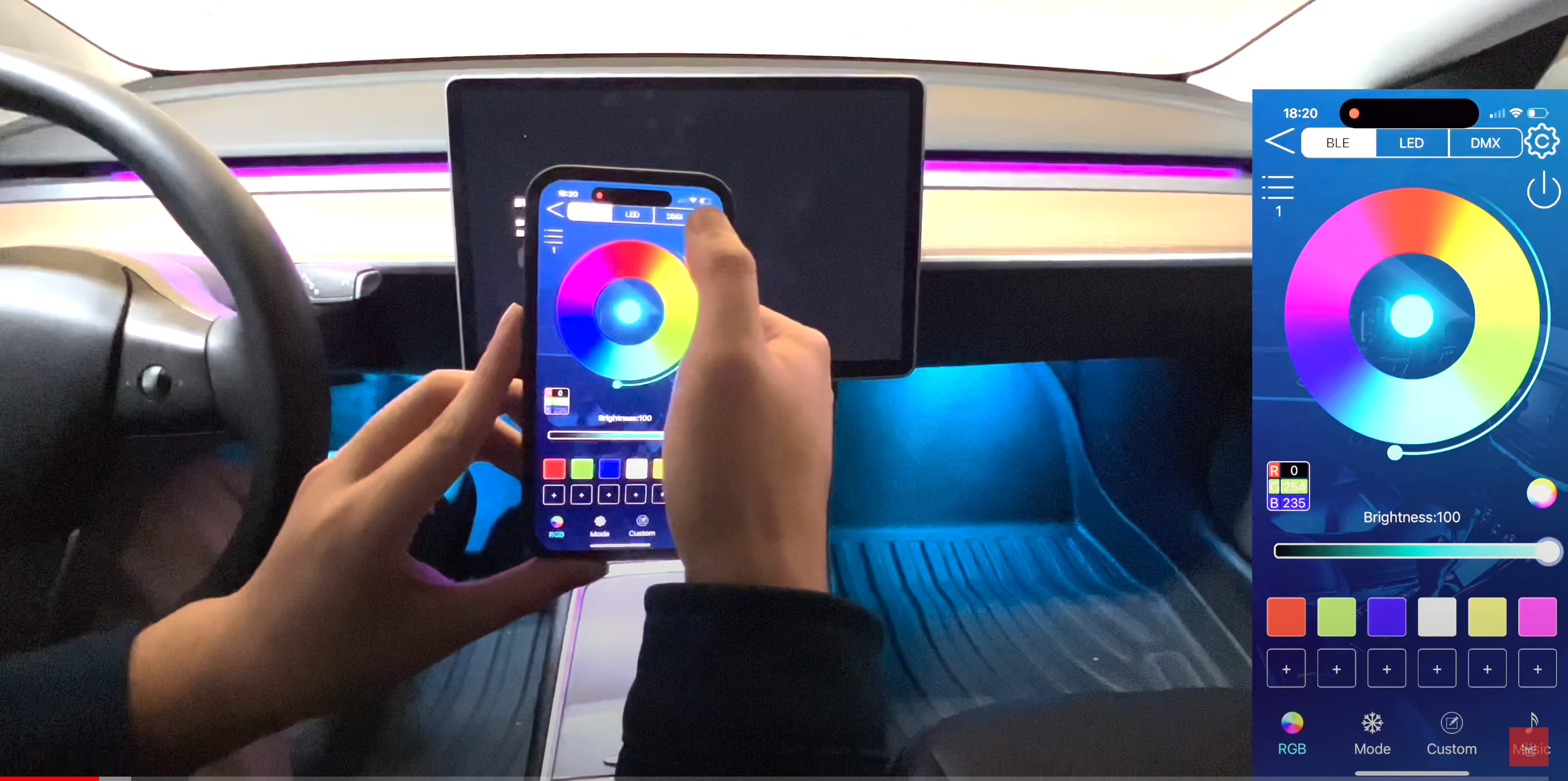 How to properly use an app to adjust the Ambient lights of a Tesla car