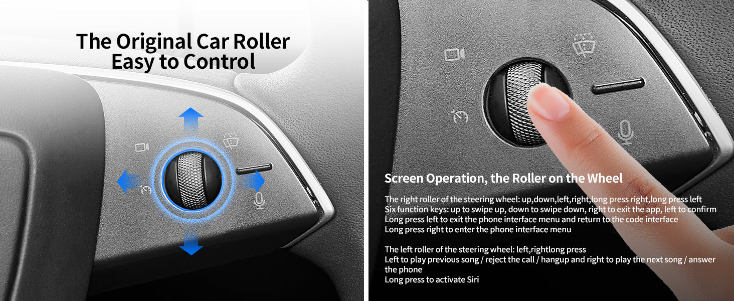 • Dual Control Options – Operate via the original steering wheel scroll wheel or directly on the touchscreen for maximum convenience.