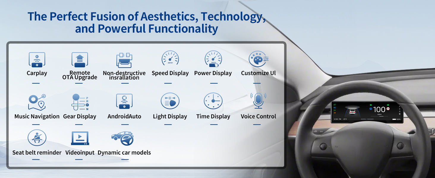 Tesla Model 3/Y Juniper & Highland 8.8" Instrument Screen with Apple CarPlay & Digital Cluster